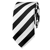 This is a black & white stripe design pattern hand made necktie. Classy black and white college striped skinny necktie. You've seen it on celebrities, rock stars, on TV and in magazines, and everywhere else. Now you can own one yourself! This tie is the latest and hippest neckwear that will take you to the next level! Measures a standard 58 inch length but sports a cool 2 inch skinny width. Black and white color in a smooth nice medium satin finish. Freshen your wardrobe with this latest comeback style neckwear. This tie is a must have for your neckwear collection. We have more variety of Neckwear Neck Ties and Bow Ties in our other auctions. ...Read more |