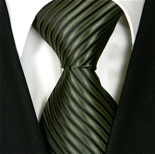 Neckties By Scott Allan, 100% Woven Olive Green and Black Tie, Dark Green Neck Ties for men